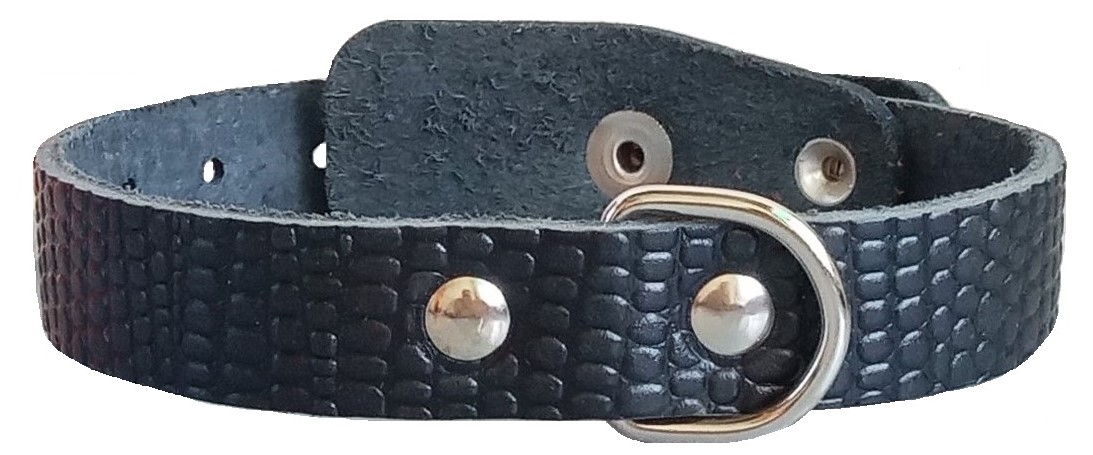 Однослойный ошейник из тисненой натуральной кожи, не прошитый, полукольцо посередине.