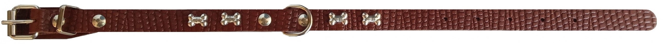 Однослойный ошейник из тисненой натуральной кожи с тиснением, не прошитый, полукольцо посередине.